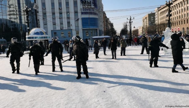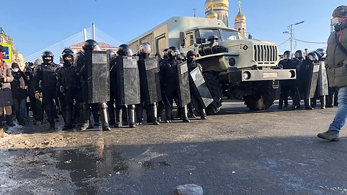 Російські силовики з самого ранку почали жорстко затримувати та бити учасників мітингів під гаслом «Свободу Навальному!», які заплановані опозицією по всій країні в суботу, 23 січня о 13.00.