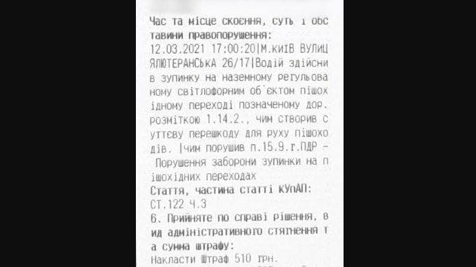 За його словами, адміністративна постанова за ч. 3 ст. 122 КУпАП була складена та навіть оплачена на місці за допомогою електронного термінала.