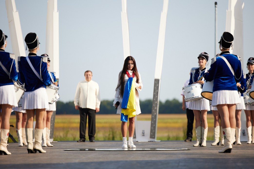 Пролунав Державний гімн України у виконанні оркестру та відбулася церемонія підняття Державного прапора на флагшток заввишки 52 метри. Це найбільший державний стяг на Черкащині. Потому пролунало 10 святкових залпів.