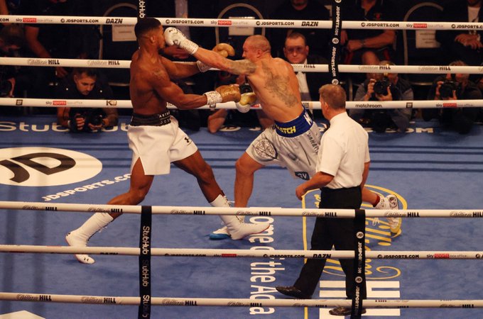 Усик ледь не відправив Джошуа в нокаут в останньому раунді, але Джошуа достояв насилу.